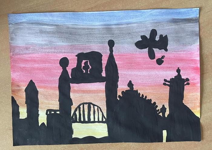 Orcas have made some wonderful art based on the Blitz. They used watercolours to create the fiery backgrounds and their then painted silhouettes at the front.