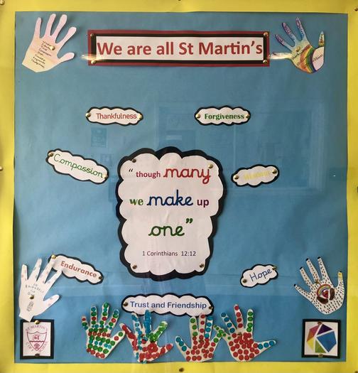 As a Church of England School we reflect the ethos of the teachings of Jesus, to be his hands and his feet. Our vision statement for St Martin’s School further reflects this image with the quotation from St Paul’s first letter to the Corinthians. It says: