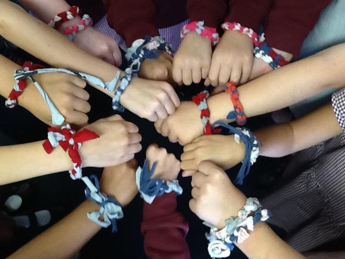 "In Term 6 children, Year 3 Fox class made friendship bracelets out of old t-shirts. We cut them up into strips and then knotted them into bracelets to take home. For our RE project, we wanted to do something which showed we are looking after God’s Earth and chose to use recycled t-shirts to create wearable art. We're proud of ourselves!" Friendship is one of our whole school Christian Values.