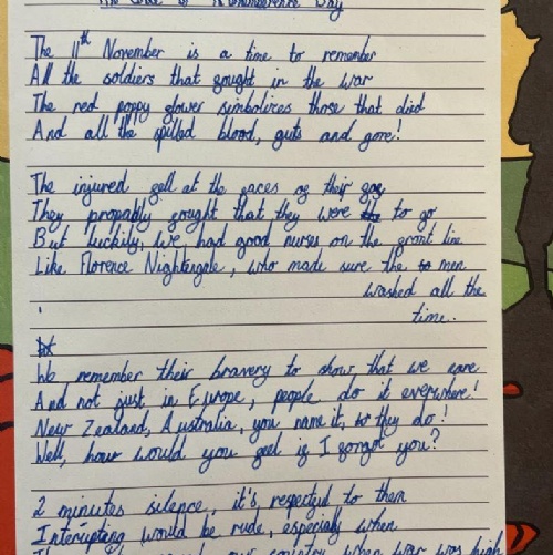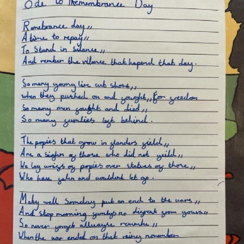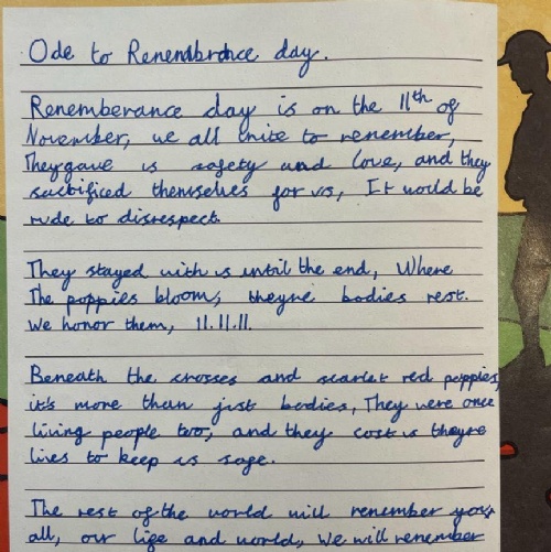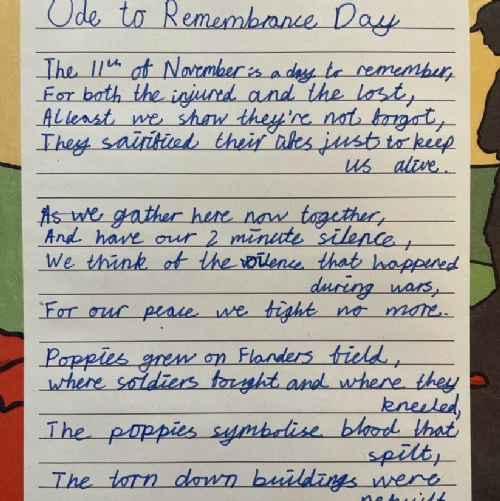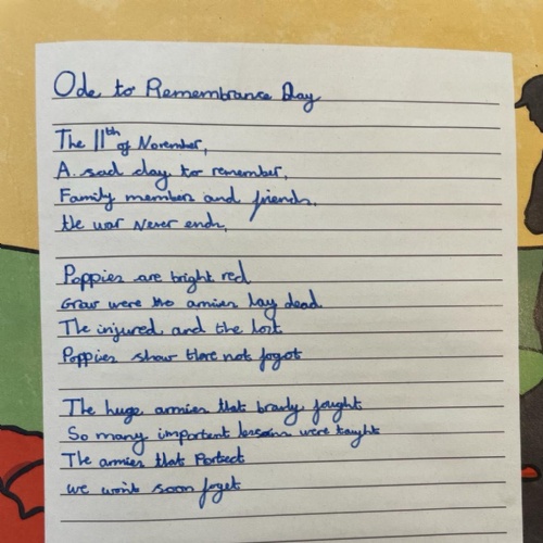 In preparation for the Service, all the Y5 children wrote their own Ode to Remembrance Day poems - some were shared during the service