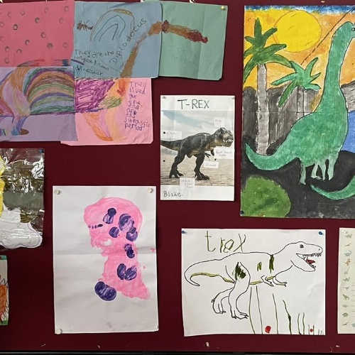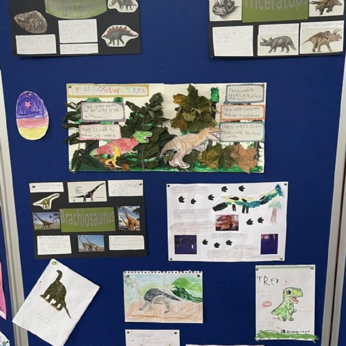 Reception and Year 1 Dinosaur fossil and homework project display - October 2023