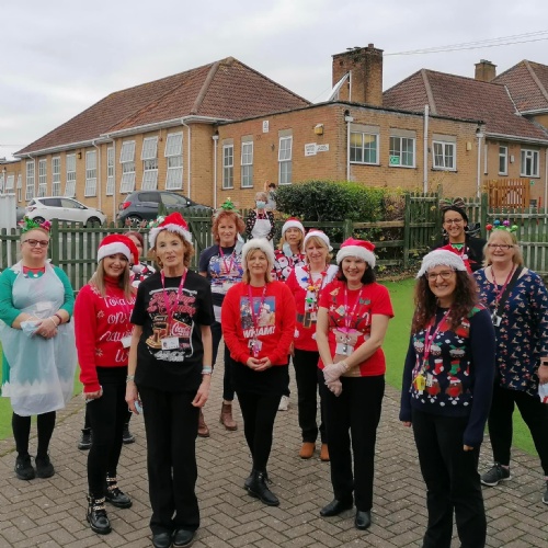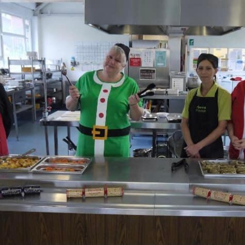 Our amazing kitchen staff and lunchtime supervisors serving over 300 Christmas Roast Lunches