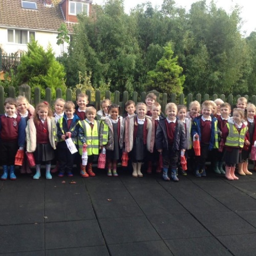 Reception Welly Walk to St Martin's Church on Remembrance Day