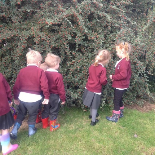 (Reception class children enjoying the Autumn Welly Walk - October 2021)