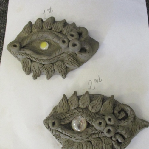 Year 6 Art and DT Week end of Term 5. A selection of the children’s finished pieces; clay dragon eyes, mazes and sketches.