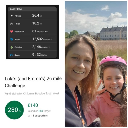 Lola class 4O and Mrs Kelly support staff, 26 miles in 1 week - combination of cycling and running.