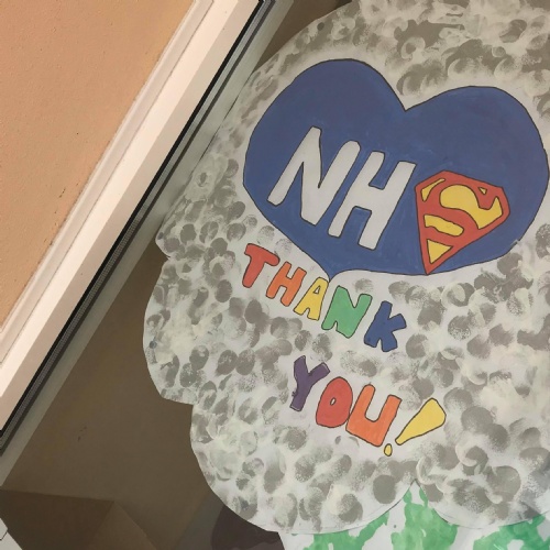 “What started as painting our hands, evolved into this huge rainbow and ‘Thank You’ to the wonderful NHS!” ������